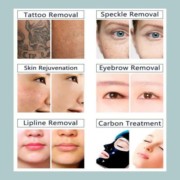| Feature | Dark Circles, Acne Treatment, Face Lift, Pigment Removal, Pore Remover, Skin Rejuvenation, Tattoo Removal, Whitening, Laser Carbon Peeling | |||